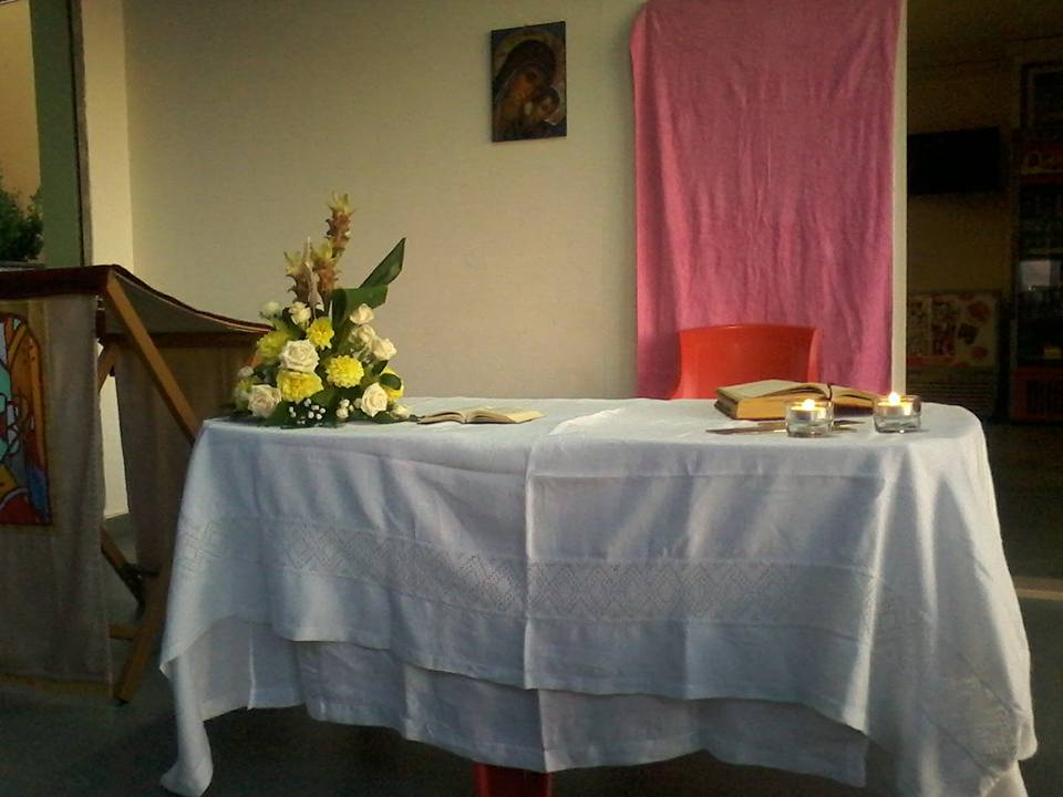 L'altare è sistemato, le panchine ci sono, la platea un po' insonnolita è presente, Don Carmine dà il via alla celebrazione dell'eucarestia in questo speciale rito parrocchiale che si rinnova per il quattordicesimo anno, tanto quanto gli anni della festa.