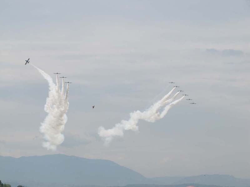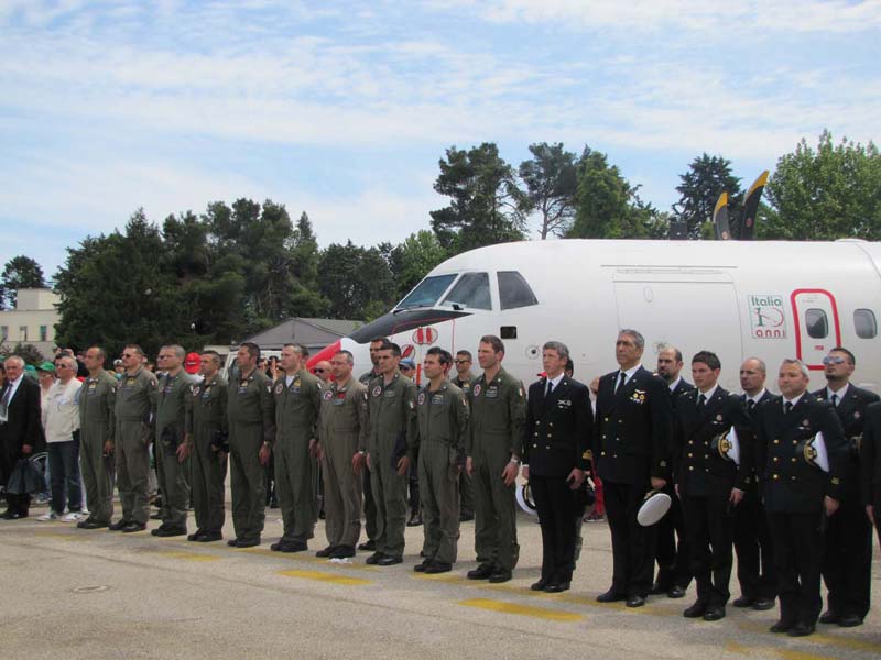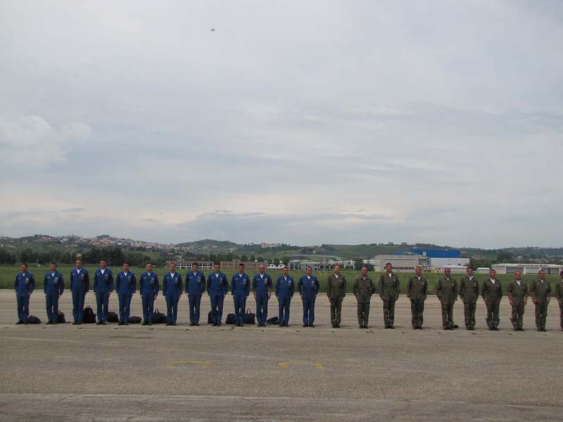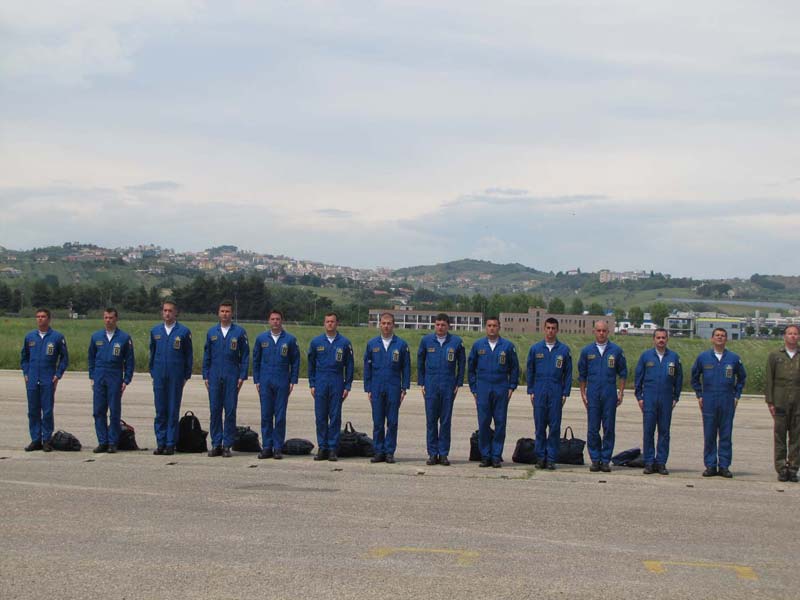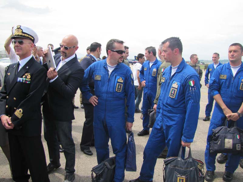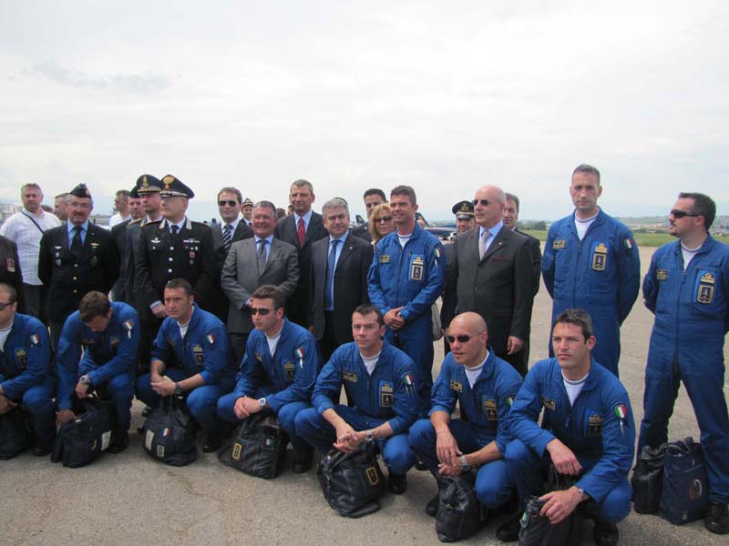 Non solo Giro d'Italia. Ieri, infatti, a Pescara è stato anche il giorno delle Frecce Tricolori, tornate in città dopo tre anni dallo straordinario Air Show dell’estate 2010 che richiamò 100mila spettatori da ogni parte d’Italia. Il capoluogo adriatico ha dato dunque il proprio benvenuto alla squadra acrobatica, e lo ha fatto con le massime autorità cittadine, che hanno voluto salutare i dieci piloti atterrati all'aeroporto d'Abruzzo con l’intero staff.