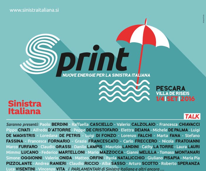 Mercoledi 31 agosto alle ore 12, presso il Comune di Pescara, avrà luogo la conferenza stampa di presentazione dell'evento Sprint, la prima festa nazionale di Sinistra Italiana.