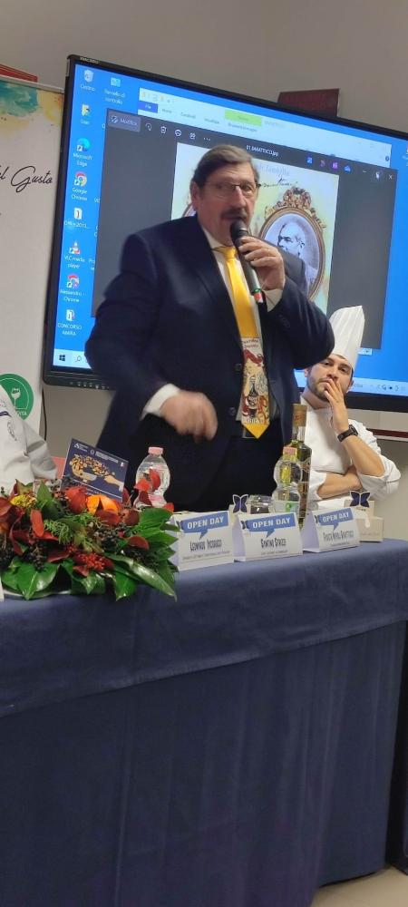 “Nella nostra scuola si produce cultura per trasformare i nostri ragazzi in professionisti a tutto tondo con competenze nella gestione delle brigate di cucina, di un albergo – ha proseguito la dirigente Di Pietro -, con competenze relazionali, organizzative, linguistiche. Quindi agli studenti garantiamo formazione culturale e professionale insieme, una formazione del genere dev’essere ovviamente ancorata alla realtà, al territorio, e la nostra scuola interagisce, dialoga ogni giorno con i professionisti di settore che imperano nel territorio, con i grandi cuochi, con le realtà alberghiere, con la capitaneria di porto, la Guardia di Finanza. Pensiamo che oggi Stefano Tommassetti, un ex del nostro Istituto, è il coordinatore del dipartimento Giovani Cuochi nato uno o due anni fa, che raccoglie più di 20 giovani cuochi e almeno 3 sono diplomati eccellenti del nostro Alberghiero”.