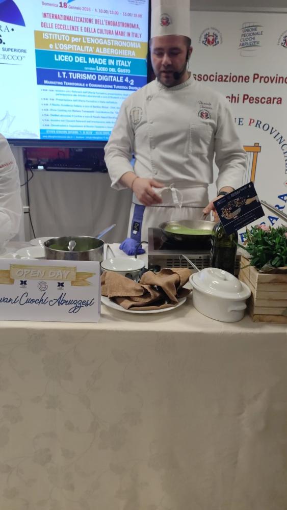 Lo ha detto la dirigente dell’Istituto Alberghiero ISS De Cecco Alessandra Di Pietro aprendo l’Open Day dedicato alla Internazionalizzazione dell’Enogastronomia, delle Eccellenze e della Cultura Made in Italy. Presenti tra gli ospiti Santino Strizzi – Chef, Gourmet e Sommelier, re del riso; Stefano Tomassetti, Coordinatore Dipartimento Giovani Cuochi Abruzzesi; Fausto Napoli Barattucci dell’omonima famiglia che si caratterizza per l’eccellenza nella produzione dei distillati, con il Corfinio.