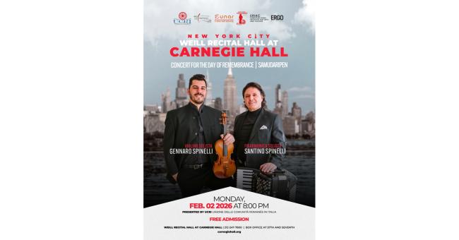 New York, 2 febbraio 2026 – Presso la prestigiosa Carnegie Hall, si terrà il Concert for the Day of Remembrance/Samudaripen, promosso e organizzato dalla Union of Roma Communities in Italy (UCRI) in occasione della Giornata Internazionale della Memoria.