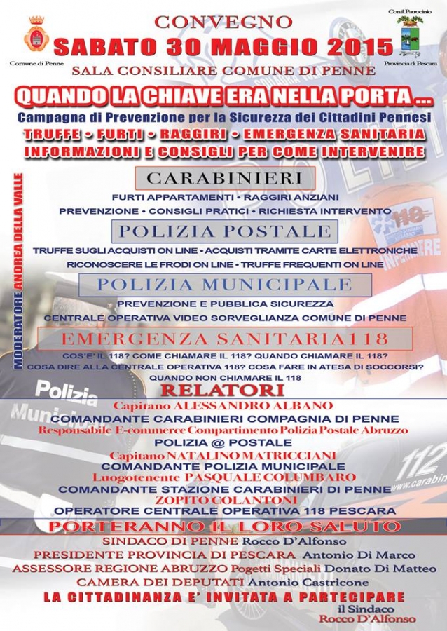 Se ne parlerà il 30 MAGGIO alle ore 10:30 presso la Sala Consiliare del Comune di Penne, in un convegno aperto al pubblico, organizzato dal Comune di Penne, su idea di Andrea Della Valle con il patrocinio della Provincia di Pescara.