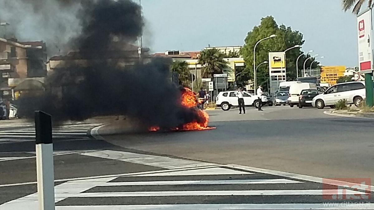 Le fiamme, come è possibile vedere dalle foto in alto, hanno totalmente avvolto l'auto mobile che ha preso fuoco mentre era in movimento.