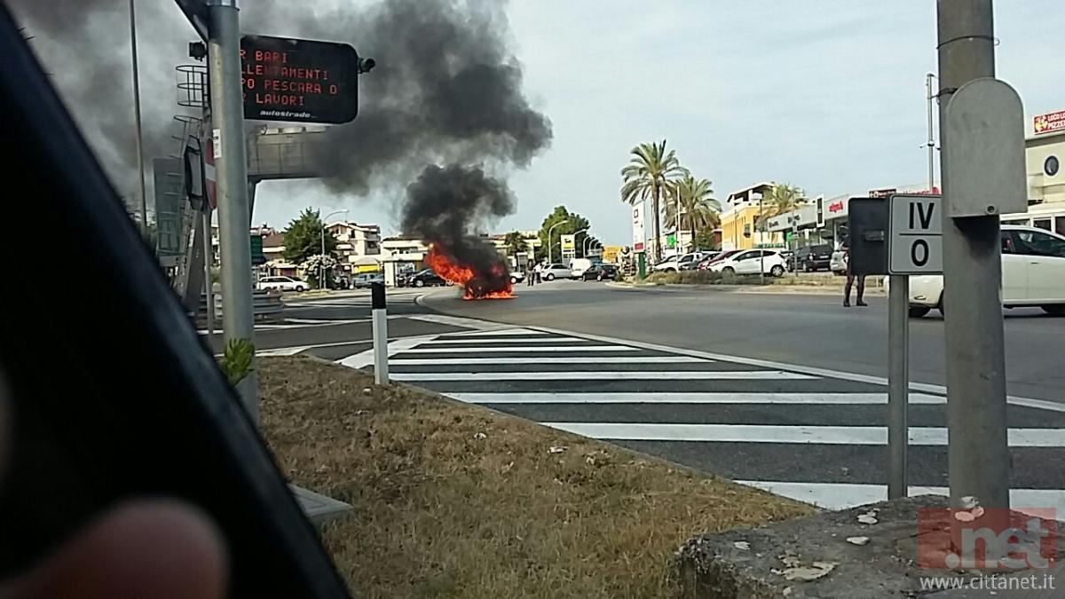 Oggi pomeriggio, poco prima delle 18:30, un'automobile è andata a fuoco davanti il casello autostradale di Pescara Nord mandando in tilt il traffico.