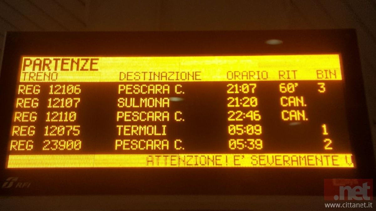 Alle 21 circa di questa sera un treno che viaggiava sulla linea ferroviaria Pescara Roma ha investito una persona nelle vicinanze della stazione San Marco.