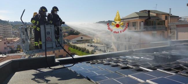 Nella mattinata odierna due squadre dei Vigili del Fuoco di Pescara, con l’ausilio dell’autoscala, sono intervenuti in Via Tirino per l'incendio di pannelli fotovoltaici ubicati sul tetto di un edificio.