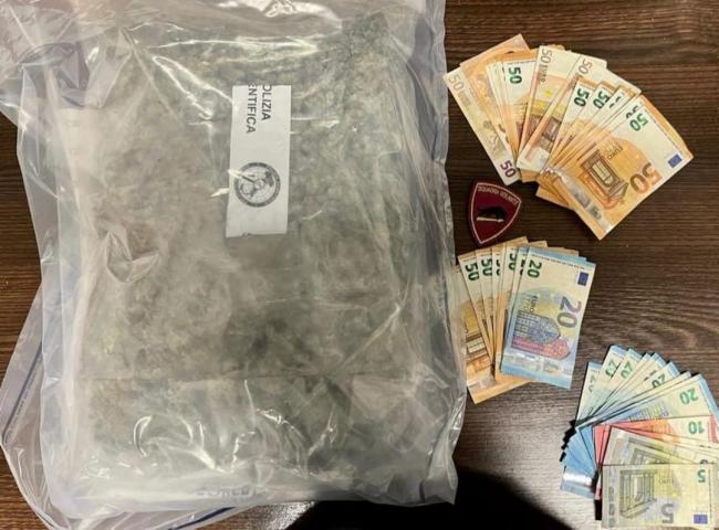 Sia la marijuana che i soldi sono ritenute probabile provento dell' attività illecita e sottoposte al vincolo di sequestro. Il giovane è stato accompagnato in Questura e successivamente arrestato per il reato di detenzione ai fini di spaccio di sostanze stupefacenti e associato presso la locale Casa Circondariale, a disposizione dell' Autorità Giudiziaria.