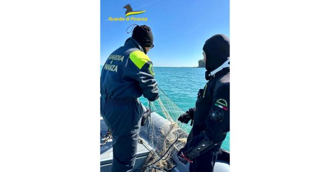 La componente subacquea del Reparto Operativo Aereonavale della Guardia di Finanza di Pescara durante l’espletamento del servizio di vigilanza costiera in località Ripari di Giobbe a Ortona, ha individuato una rete da pesca priva di segnalazione in zona vietata. Dopo un’immersione ricognitiva per definirne la lunghezza, il posizionamento e il tipo di ancoraggio, i militari hanno sottoposto al vincolo del sequestro oltre 1000 metri di rete utilizzata per la pesca di frodo e posizionata a circa 50 metri dalla costa. Il prodotto ittico presente al momento del recupero è stato liberato dalla rete e rigettato in mare in quanto ancora vitale.