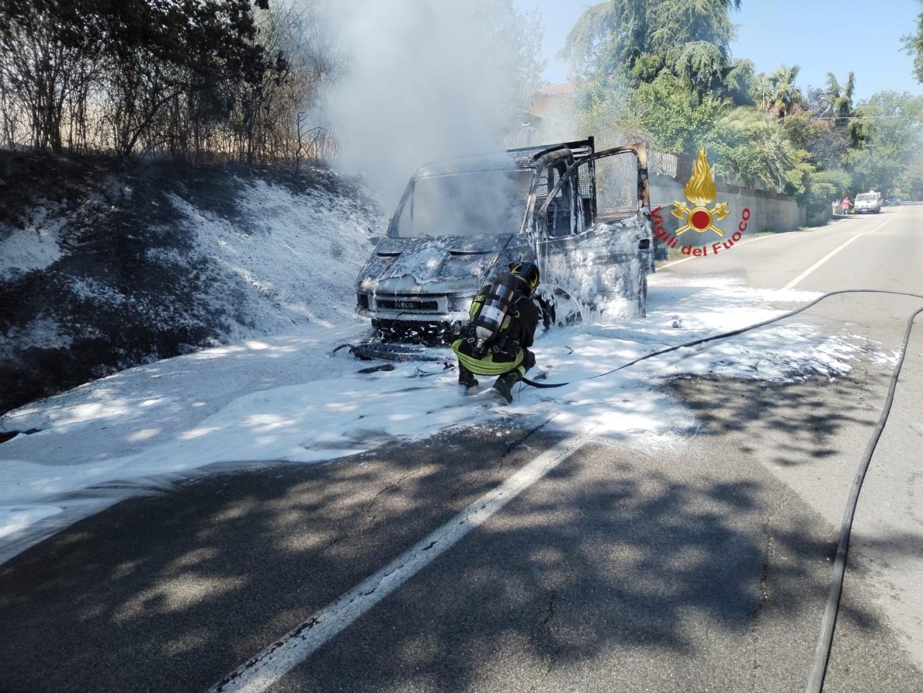 Paura ad Alanno questa mattina, intorno alle ore 10.30, quando una squadra del distaccamento locale dei vigili del fuoco si è recata in contrada Santa Maria del Carmine per l'improvviso incendio di un furgone della Iveco, avvenuto mentre il veicolo era in movimento. I pompieri, appena arrivati, hanno provveduto a mettere in sicurezza la zona delle operazioni e poi hanno spento le fiamme utilizzando del liquido schiumogeno.