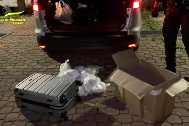La Gdf del comando provinciale di Bolzano ha sequestrato quasi 15 chili di cocaina e arrestato un 52enne e una 37enne, entrambi residenti in Abruzzo. L'operazione è stata portata a termine della notte tra venerdì e sabato quando, durante un controllo nei pressi del casello autostradale di Bolzano Sud, i Baschi Verdi hanno notato un'auto con a bordo due persone che, alla vista della pattuglia, ha compiuto una manovra azzardata per spostarsi dalla corsia di uscita dalla barriera verso il centro della carreggiata, nella speranza di approfittare dell'intenso traffico di auto per sottrarsi a un eventuale controllo.