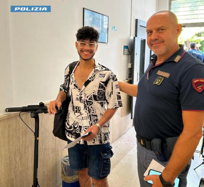 Gli era stato rubato il monopattino nel pomeriggio del 23 agosto, nei pressi della stazione ferroviaria di Pescara. Grazie ai particolari riportati in denuncia, il giorno successivo, gli agenti delle Volanti lo hanno ritrovato e riconsegnato al proprietario, un 18enne residente in provincia.