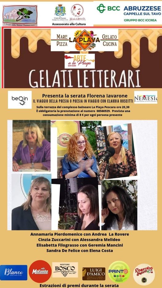 “Gelati Letterari” prosegue gli appuntamenti a Pescara nel segno della lettura e della cultura alla terrazza del complesso balneare La Playa (Piazza le Laudi, 2).