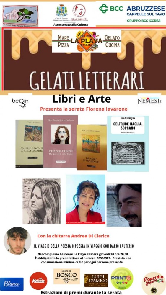 “Gelati Letterari” prosegue gli appuntamenti a Pescara nel segno della lettura e della cultura alla terrazza del complesso balneare La Playa (Piazza le Laudi, 2).