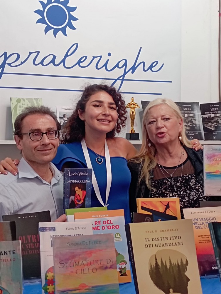 Sandra De Felice: “Un periodo di grandi soddisfazioni per la mia sesta silloge Sfumature di cielo edito Costa Edizioni. Tra queste ci tengo a ricordare con piacere la partecipazione alla Rassegna dell’Editoria Abruzzese lo scorso settembre; qualche settimana fa un altro importante traguardo: l’invito alla rassegna Campania Libri Festival a Napoli grazie all’invito dell’agente letterario Marylin Santaniello dell’agenzia Sopralerighe che mi ha permesso di parlare del mio libro nella splendida cornice di Palazzo Reale. Due giorni intensi di emozioni e gratificazioni del pubblico che ringrazio. Un altro appuntamento nella mia città, Pescara, che ogni volta mi riempie di gioia, è la partecipazione al FLA-Festival dei Libri e Altrecose che mi vedrà anche per questo 2023 tra gli autori. Ringrazio per tutto questo la mia editrice Elena Costa, sempre molto attenta ai suoi autori e alle rassegne nazionali e non e, al tal proposito, con orgoglio ci tengo a dire che Sfumature di cielo è stato presente alla Fiera del Libro di Francoforte. Tappe dunque importanti per le quali ringrazio tutti i miei lettori presenti e futuri e auguro a ogni di voi sfumature nel cuore”.