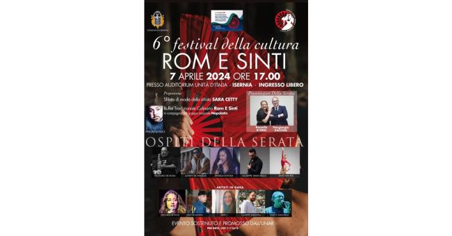 Domenica 7 aprile in occasione della giornata internazionale del popolo rom presso l’auditorium Unità d’Italia a Isernia, Molise si terrà la 6 edizione Festival della Cultura Rom e Sinti. L’evento, promosso e distenuto dall’UNAR (Ufficio Nazionale Antidiscriminazioni Razziali), si colloca nella settimana della cultura che va dal 3 al 10 aprile dove ci saranno una serie di eventi. Il Festival vuole valorizzare le risorse artistiche della comunità rom, per far conoscere la bellezza di un popolo, proponendo esempi positivi di integrazione nel tessuto sociale. Al Festival prenderanno parte anche rom abruzzesi: Angela De Rosa di Sulmona vincitrice della quinta edizione del Festival e Veronica De Rosa di Sulmona. In veste di giurato poi vedrà la presenza di Virginia Morello (la prima donna rom rappresentante sindacale) di Martinsicuro e Giulia Di Rocco (membro del Forum RSC UNAR e membro IRU), originaria di Pratola Peligna.