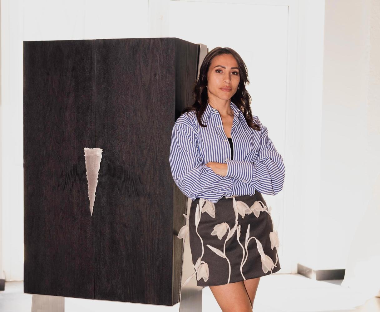 Tra i pezzi presentati, KAÍŌ è una poltrona in legno scolpito a mano, lavorato attraverso la combustione controllata: un processo che trasforma il materiale, creando superfici profonde e tattili, ispirate a cieli e nuvole. AÈRAS, invece, è un cabinet bar che riprende la lavorazione a combustione anche nelle superfici esterne, mentre all’interno cela una struttura tinta di rosso, giocando sul contrasto tra un’estetica esterna essenziale e un interno più intimo e sorprendente, pensato per custodire vetri e liquori in un equilibrio tra funzione e narrazione. La partecipazione al Fuorisalone ha rappresentato per la designer un’importante occasione di confronto con operatori del settore, buyer e pubblico internazionale, confermando l’interesse verso un approccio progettuale che valorizza l’unicità del pezzo e il dialogo tra materia e forma.