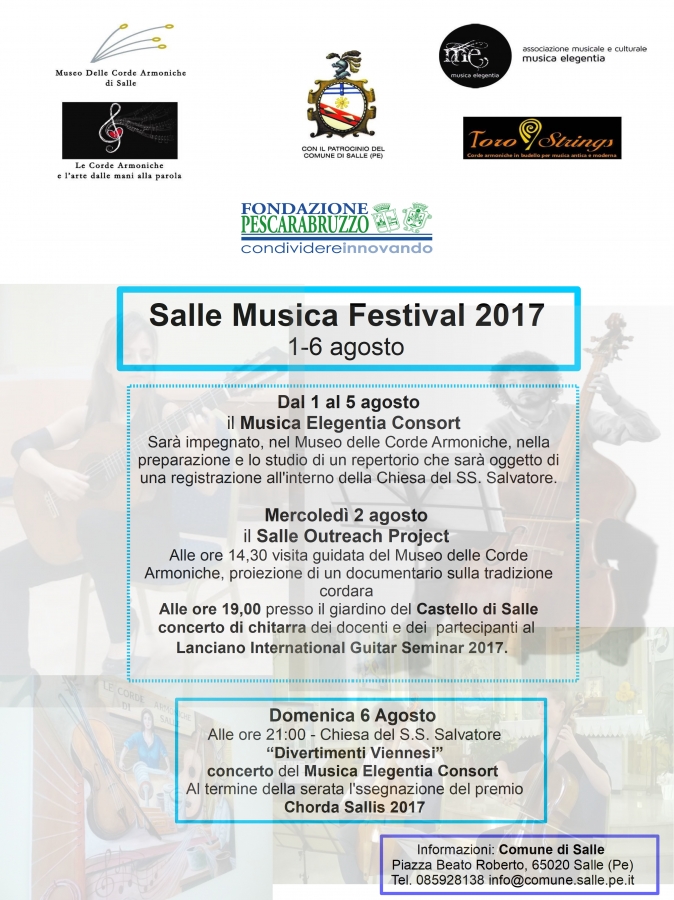 L'iniziativa è patrocinata dal Comune di Salle, con il contributo della Fondazione Pescara Abruzzo, in collaborazione con Museo delle Corde Armoniche e con il supporto di Toro Strings
