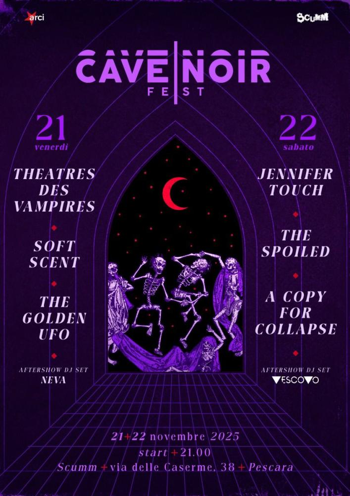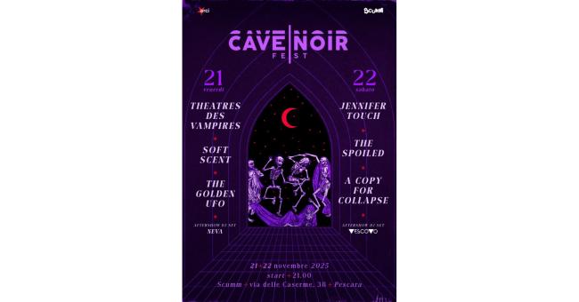 Nasce tra le mura di un’antica prigione borbonica nel cuore del centro storico di Pescara, oggi sede del Cocktail bar Scumm e del live club Scumm Cave Room, il festival Cave Noir: dedicato alla musica e alla cultura goth, darkwave, industrial e post-punk. Venerdi 21 e sabato 22 novembre, due notti dense del lato oscuro della musica.