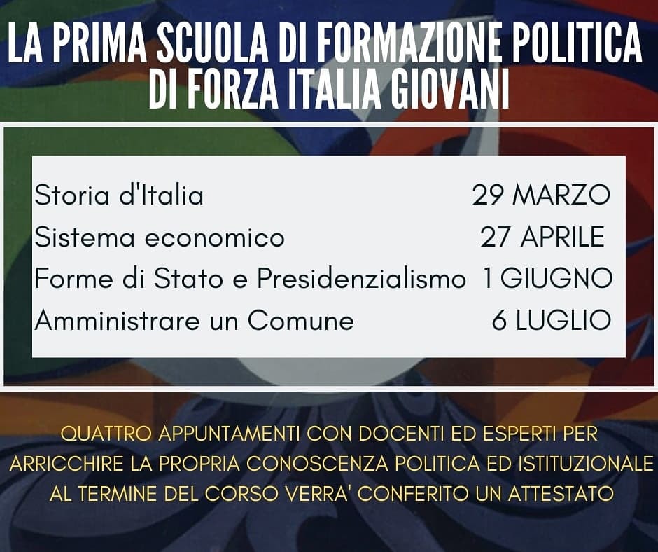 "Sarà il 29 marzo la data di inizio delle lezioni della Scuola di Formazione Politica organizzata da Forza Italia Giovani.