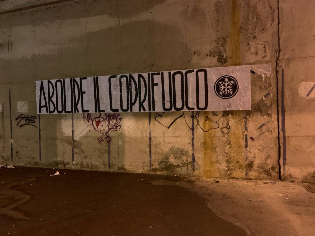 "Abolire il coprifuoco": questo il testo degli striscioni affissi da CasaPound Italia, in diverse città abruzzesi e molisane, per protestare contro la decisione del governo di protrarre questa misura.