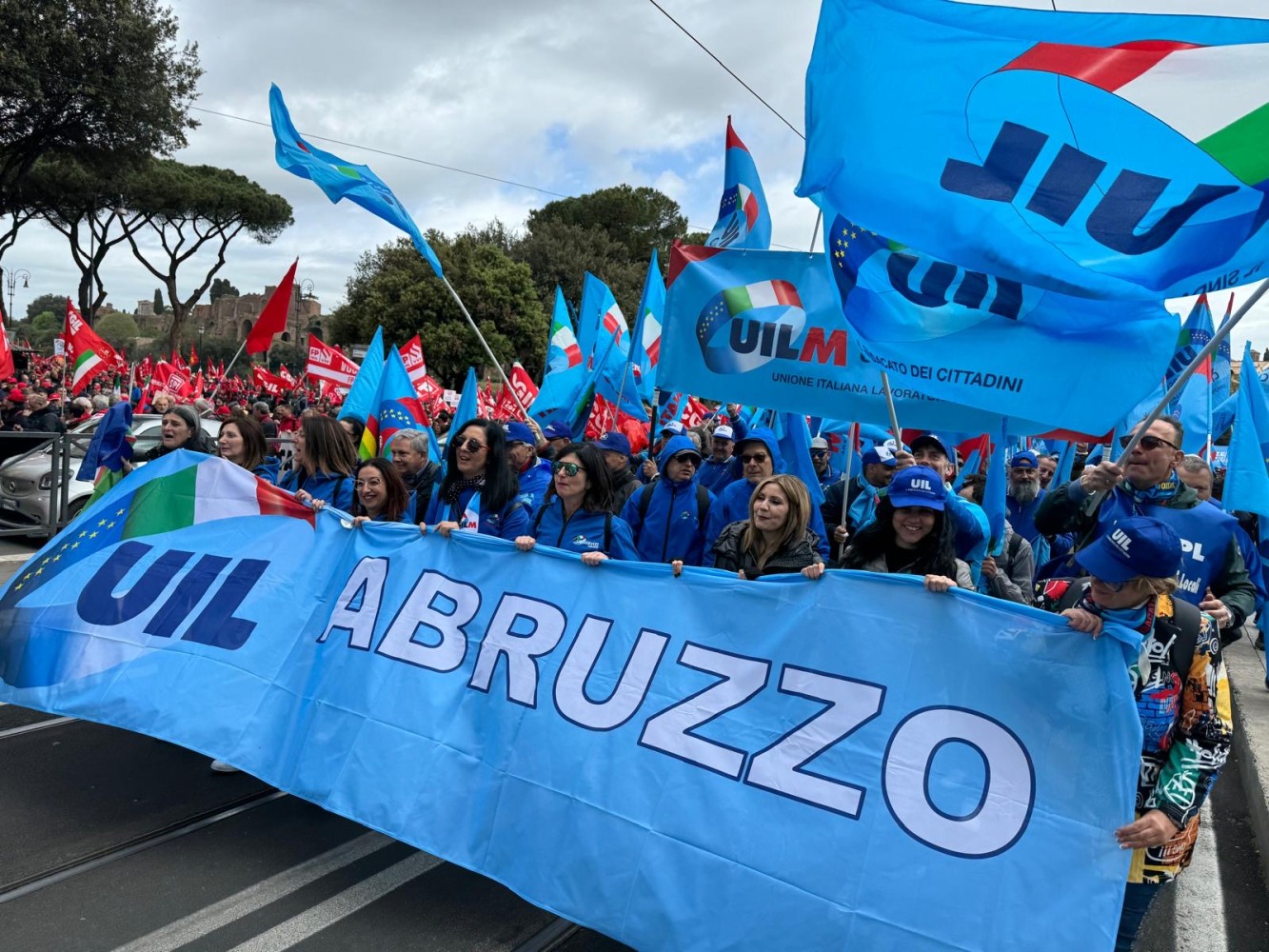 E ha aggiunto: “La delegazione regionale della Uil ha partecipato alla manifestazione di Roma per dire anche alla Regione Abruzzo che i temi che toccano a livello nazionale riguardano anche quello regionale. A partire dalla sanità pubblica, per la quale noi chiediamo di investire risorse attraverso fondi strutturali e del Pnrr, per rimettere in campo una sanità pubblica regionale credibile e all’altezza della situazione e che dia diritto di cittadinanza sulla sanità a tutti gli abruzzesi”.