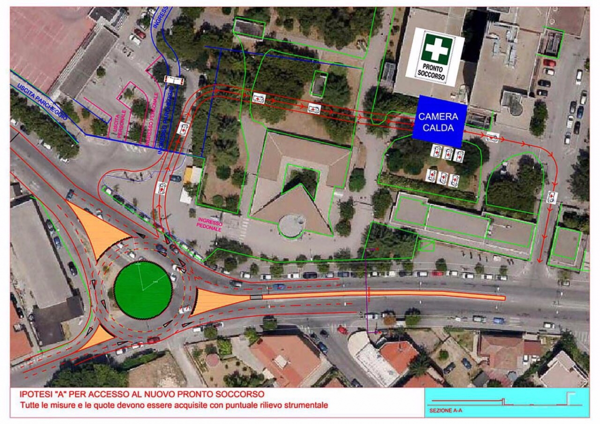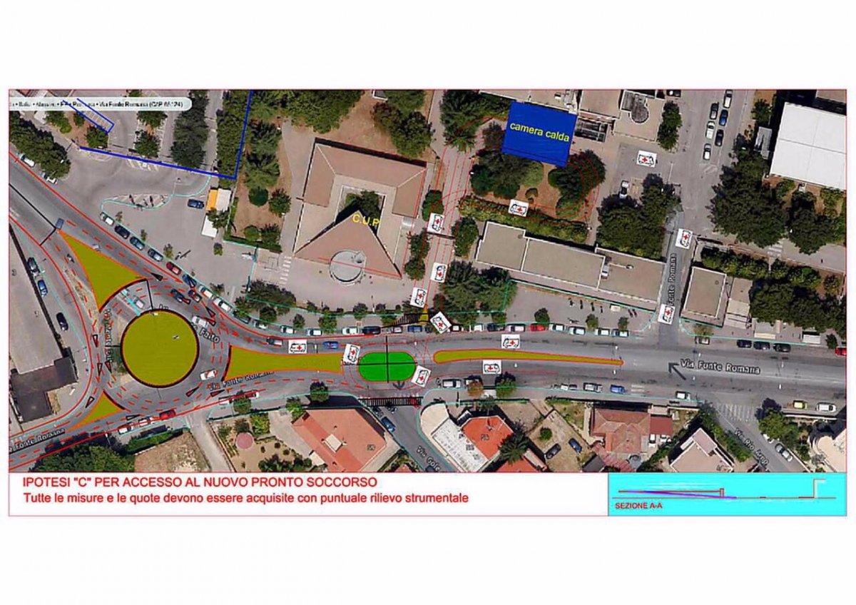 A proposito di mobilità , la conformazione del nuovo percorso di entrata e di uscita dei mezzi di soccorso ci consente di bissare la necessità di prevedere una diversa viabilità all'incrocio tra via Fonte Romana e via Monte Faito. In questa zona abbiamo già studiato una rotatoria che possa fluidificare il traffico, evitando anche pericolose manovre di inversione ad U tra le corsie che attualmente corrono dinanzi al nosocomio. Approvato il progetto si procederà speditamente ora. I tempi stimati per l'ultimazione dei lavori si aggirano sui 4 mesi".