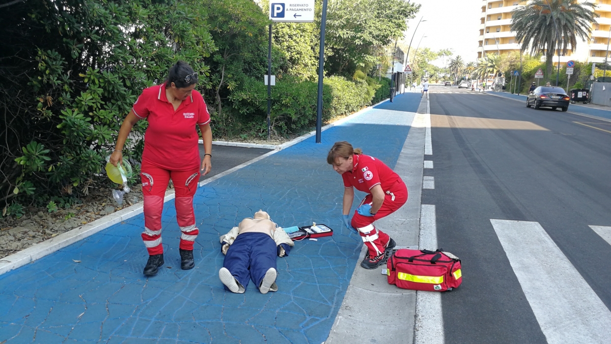 Questa mattina due volontarie della Croce Rossa Italiana del Comitato locale di Penne, che comprende le Unità Territoriali di Cappelle, Loreto, Montesilvano, Penne e Pianella, hanno eseguito la simulazione di un intervento di soccorso per arresto cardiaco.