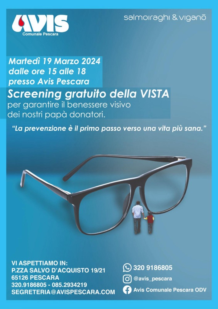 Si continua quindi su questo filone fondamentale. Avis Pescara ringrazia in una nota "Salmoiraghi & Viganò" per il supporto in occasione dei controlli della vista associati alla figura del papà donatore.