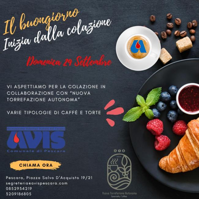 L'iniziativa ha una formula molto simpatica e interessante, in collaborazione con la Nuova Torrefazione Autonoma di Via Roma, ragazzi giovani che mettono a disposizione la loro conoscenza delle varie tipologie di caffè, offrendo quindi caffè e dolci da loro realizzati. L'appuntamento è per domenica 29 settembre nella sede di piazza Salvo D'Acquisto a Pescara.