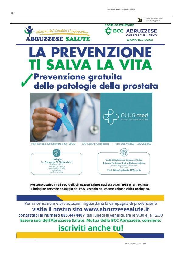 Dal lunedì al venerdì tutti i soci dell’Abruzzese Salute, Mutua della BCC Abruzzese, possono prenotarsi per aderire alla campagna di prevenzione presso il Centro Plurimed di Spoltore.