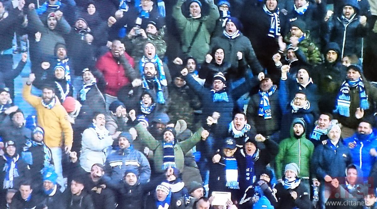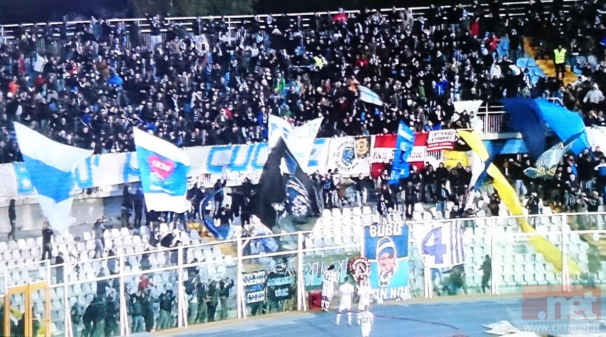 Nel giorno dedicato alla commemorazione della scomparsa di Marco Mazza, splendida coreografia in curva, deposto anche un mazzo di fiori dal capitano biancoazzurro.