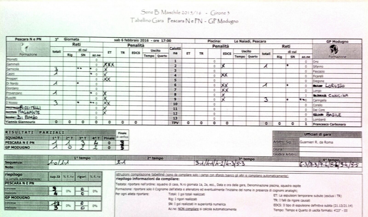 Una buona partita, che ha regalato al Pescara Pallanuoto la terza vittoria su tre partite finora disputate nella serie B maschile e quindi la leadership del girone. Un 9-5 piuttosto evidente ai danni del Modugno, anche se è corretto dare rilevanza alla discreta prestazione dei pugliesi specie nei primi tre tempi, in cui l'incontro si è mantenuto più equilibrato.