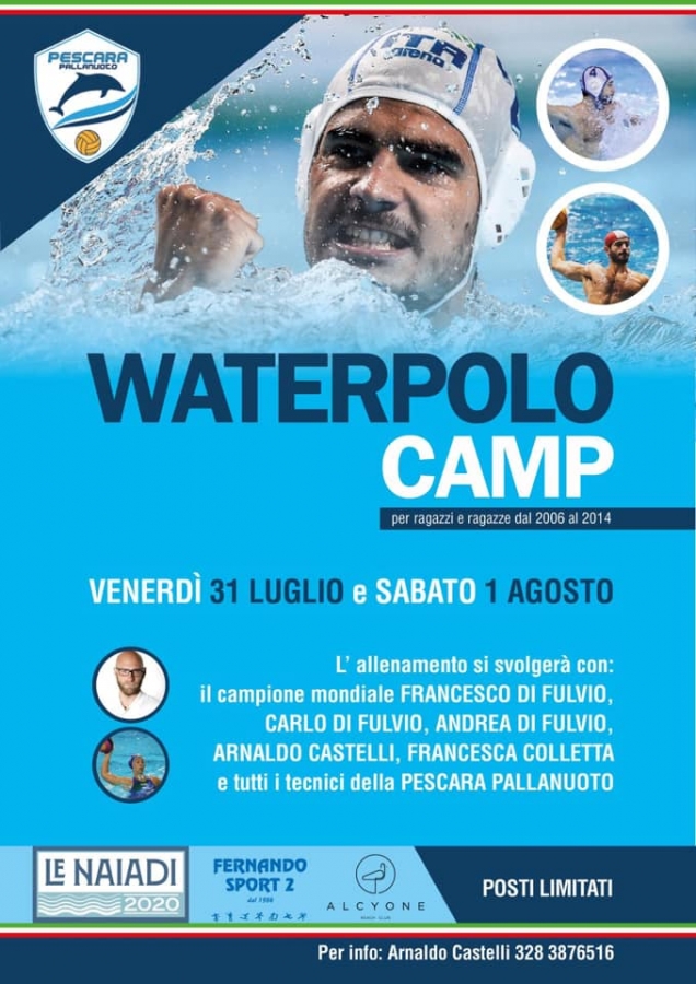 La due giorni di allenamento, di scena alla piscina del complesso Le Naiadi a Pescara, si svolgerà con il campione del mondo Francesco Di Fulvio e poi con Carlo Di Fulvio (Pescara Pallanuoto), Andrea Di Fulvio (Rari Nantes Florentia), Arnaldo CastelliFrancesca Colletta e tutti i tecnici del team Pescara Pallanuoto.