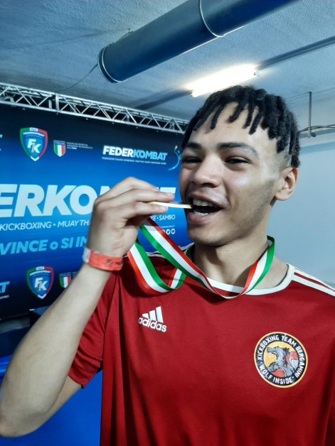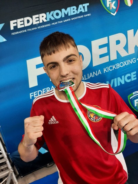 “E’ andata bene, mi ero allenato tantissimo per arrivare pronto a questo momento – ha detto il vice campione italiano Di Giovanni (nella foto sotto) –. Ringrazio il mio maestro e i compagni di squadra che mi stimolano ogni giorno. Tornerò in palestra per tornare l’anno prossimo: l’obiettivo ora è quello di arrivare a vincere il titolo. Per ora sono contento della mia prestazione e del secondo posto. Era la mia seconda uscita ufficiale sul ring, la prima volta ad un Campionato italiano. Per me ogni giorno è uno stimolo nuovo, una spinta per la mia crescita. La preparazione con il Maestro Bergamini è sempre eccellente. Dedico al team e alla mia famiglia questa medaglia”.