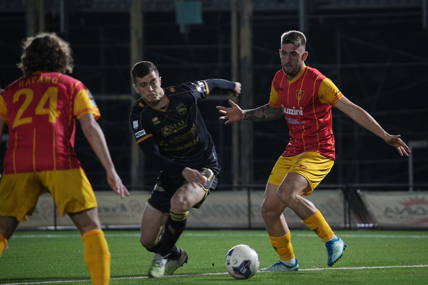 Punizione di Sbaffo con palla sul secondo palo, colpo di testa imperioso del giocatore marchigiano, respinta prodigiosa di Plizzari ma non può nulla sul tap in sempre di testa da metri zero. Nell'ultima fase del match la squadra di Bucaro cerca di reagire e agguantare in tutti i modi il 3-3, ma dopo cinque minuti di recupero deve arrendersi: al triplice fischio, infatti, viene decretata la quarta sconfitta consecutiva in trasferta per il Delfino, battuto dalla Recanatese come già avvenuto nella gara d'andata.
