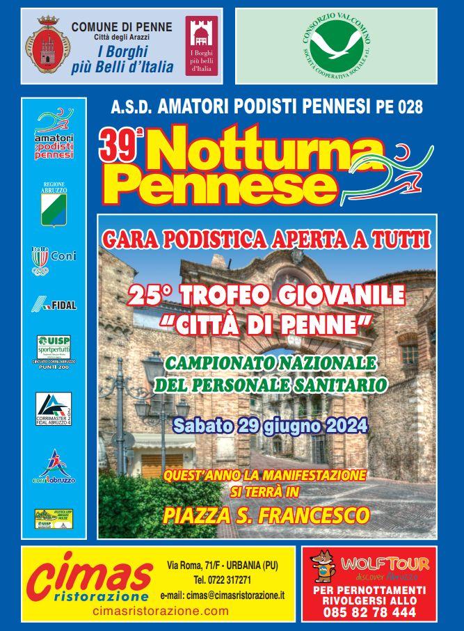 Penne, terra di appuntamenti di prestigio quando incontra lo sport. Per l'area vestina un appuntamento di indubbio richiamo è la Notturna Pennese che celebra oggi la 39esima edizione. Gli organizzatori dell'Amatori Podisti Pennesi si sono mobilitati al massimo per garantire l'ottima riuscita di questa edizione 2024 che annovera il campionato nazionale del personale sanitario e dà l'opportunità ai podisti provenienti da fuori Abruzzo di potersi iscrivere gratuitamente. Nutrito come sempre il clichè della manifestazione che avrà come cuore pulsante piazza San Francesco. A fare da apripista le gare per i bambini e per i ragazzi fino ai 15 anni con inizio alle 19 (25° Trofeo Giovanile di Penne) e premiazione per tutti i baby partecipanti.