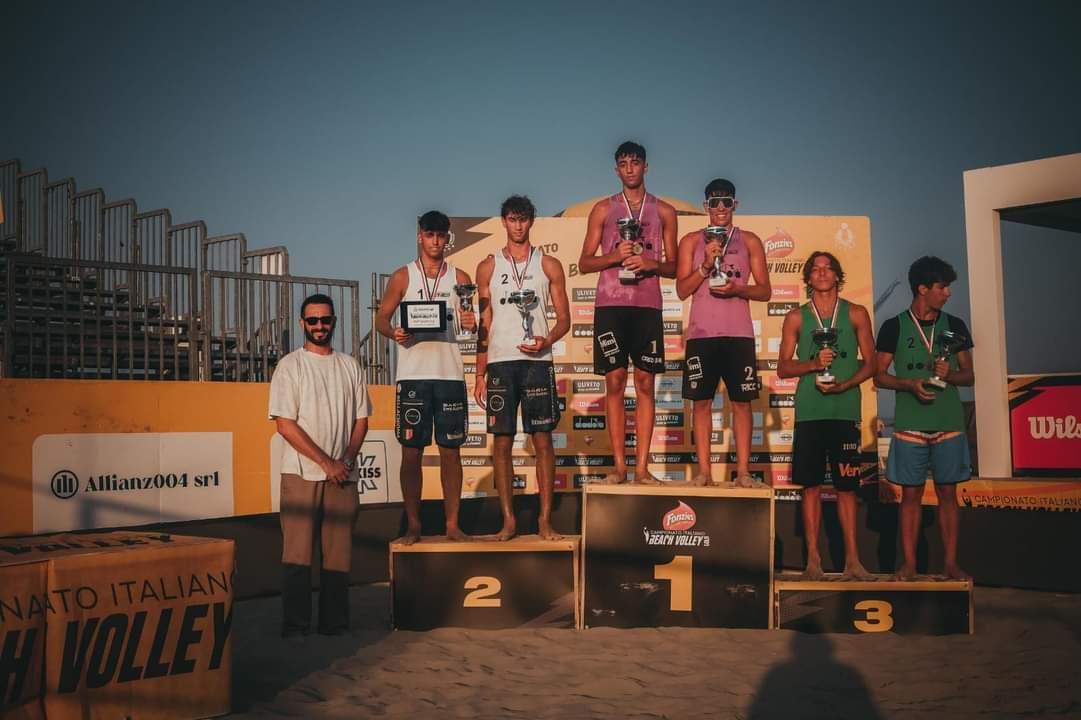 Sara Matterazzo con Romina Carli e Paolo Ricciardi con Emanuele Barberio sono i vincitori della categoria Under 18 nella tappa del Campionato Italiano di Beach volley che, in questi giorni si sta svolgendo a Montesilvano. A premiare i vincitori del Campionato giovanile, anche l’assessore del comune di Montesilvano, Alessandro Pompei. Nel femminile, Matterazzo e Carli hanno superato in finale Fabiana Cucchi e Vittoria Helena Mioso con il punteggio di 2-0. Ad aggiudicarsi il terzo posto sono state invece Bibliotti Fabiola e Merlini Ginevra, uscite vincitrici contro la coppia formata da Abondio e Durand.