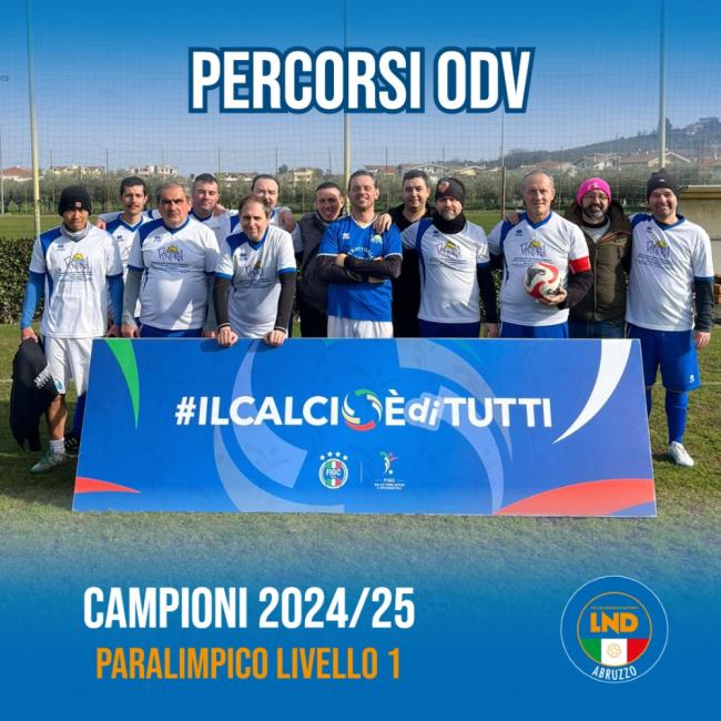 Portacolori d’Abruzzo saranno le squadre campioni regionali del Calcio Paralimpico 2024/25: nel “livello 3” il successo lo ha conquistato il Lanciano Special, nel “livello 1” vittoria finale per la Percorsi ODV Pescara.
