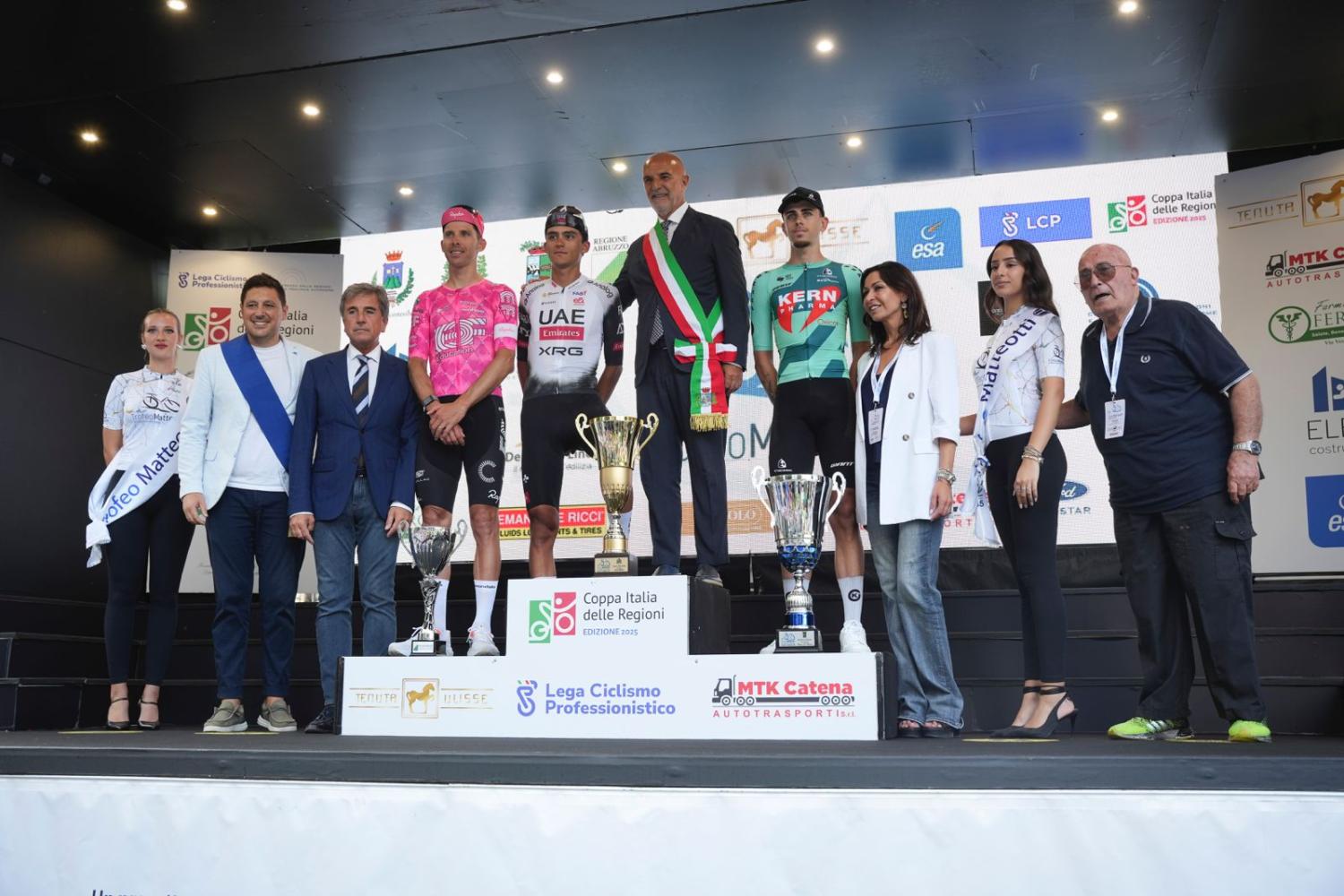 La ciliegina sulla torta non poteva mancare a Pescara: a completare un podio tutto straniero, il portoghese Rui Costa (EF Education EasyPost), ex campione del mondo 2013, e lo spagnolo Pau Miguel Delgado (Equipo Kern Pharma). Un parterre di grandi firme, arricchito dalla presenza del campione olimpico di Tokyo 2021, Richard Carapaz (EF Education EasyPost), che ha aggiunto ulteriore prestigio alla 77ª edizione del Trofeo Matteotti con la presenza di due abruzzesi doc: il pescarese Lorenzo Masciarelli della MBH Bank Colpack Ballan CSB e il lancianese Nicolò Pizzi della MG.K Vis Costruzioni e Ambiente.