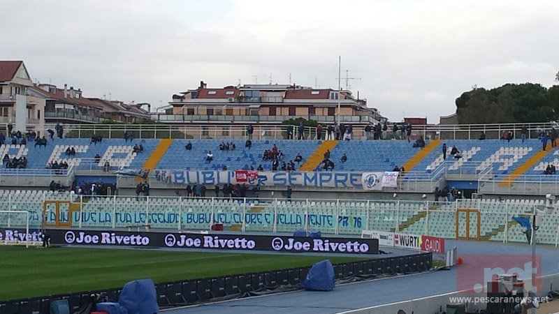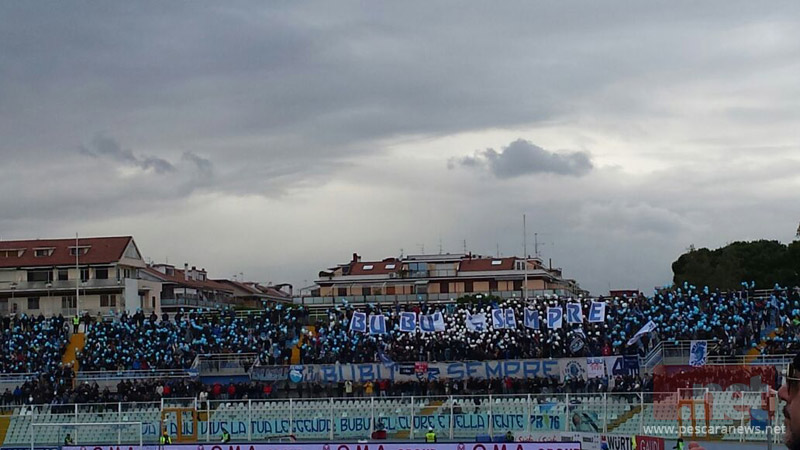 Prima dell'inizio della partita, il Presidente Sebastiani ha deposto un mazzo di fiori sotto la curva nord per ricordare Marco Mazza, conosciuto a tutti come Bubù, il capo dei Pescara Rangers scomparso 10 anni e un altro mazzo di fiori è stato donato alla moglie di Gabriele Paolini, uno steward dello stadio scomparso.