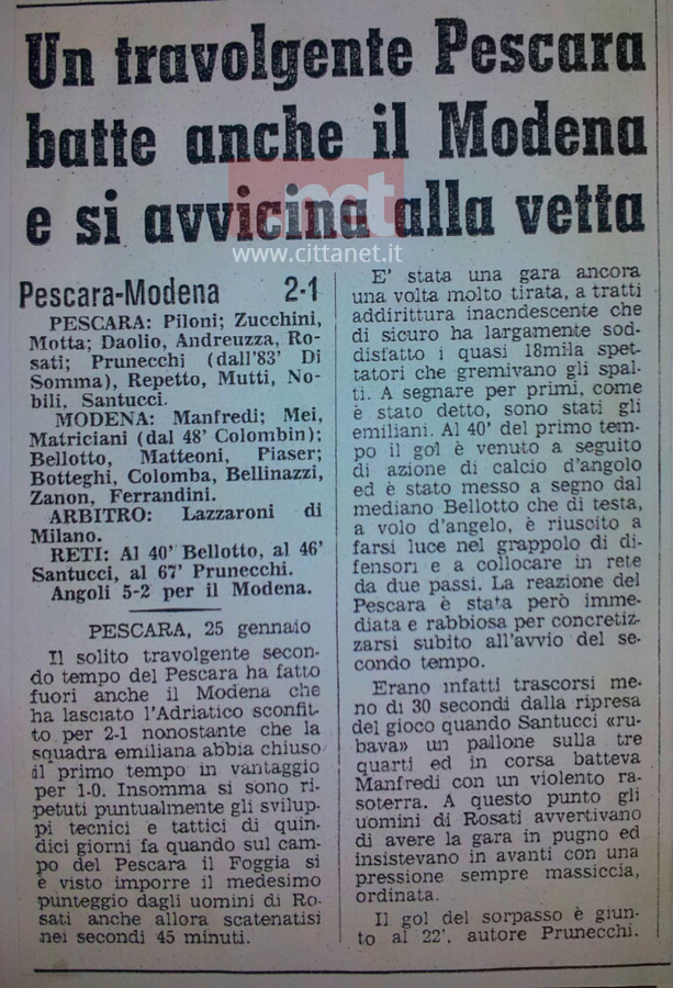 1975 -76 B Pescara – Modena 2 - 1. 39' Bellotto (MO), 46' Santucci, 69' Prunecchi