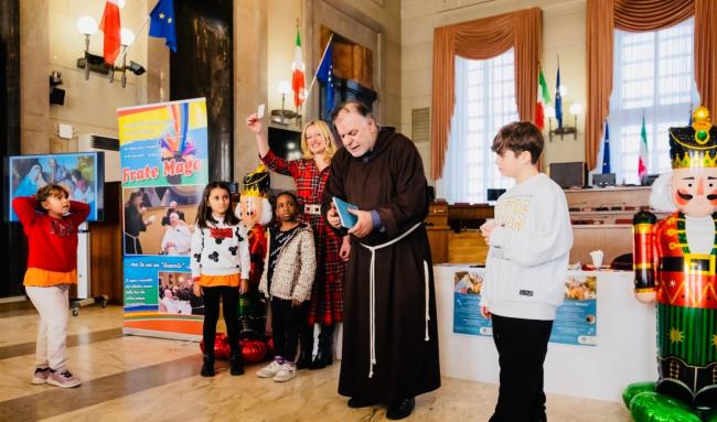 Grande festa con i bambini delle scuole pescaresi ieri nella sala consiliare del Comune. L’ospite d’onore della mattinata è stato Frate Gianfranco Priori, frate Cappuccino Rettore del Santuario dell’Ambro, che ha stupito tutti con i suoi trucchi da illusionista, ammaliando il pubblico con carte e vari giochi di prestigio divertenti e coinvolgenti. I bambini e gli adolescenti sono rimasti rapiti dai movimenti veloci, dalla grande esperienza e abilità di “Frate Mago” che con il suo spettacolo ha girato l’Europa ed è stato ospite molto apprezzato persino di Papa Francesco.