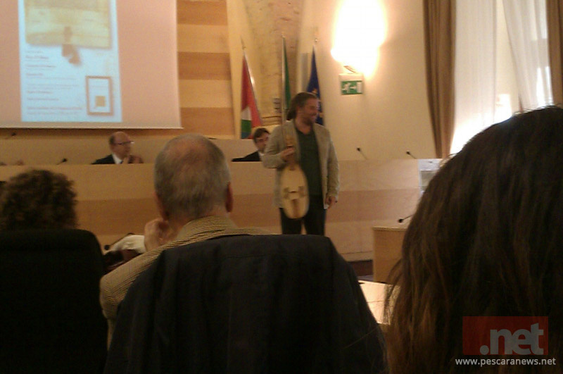 Prima della presentazione vera e propria del libro, c’è un breve intervallo musicale regalato dal professor Marco Giacintucci. Con il supporto della sua viella, strumento tipico del medioevo utilizzato per accompagnare il canto, esegue alcuni brani estratti dal Codice di Guardiagrele del XIV e XV secolo. I brani, secondo la tecnica del contrafactum, abbinavano la musica dell’epoca riprodotta in ambiti ecclesiastici ad alcuni canti profani.